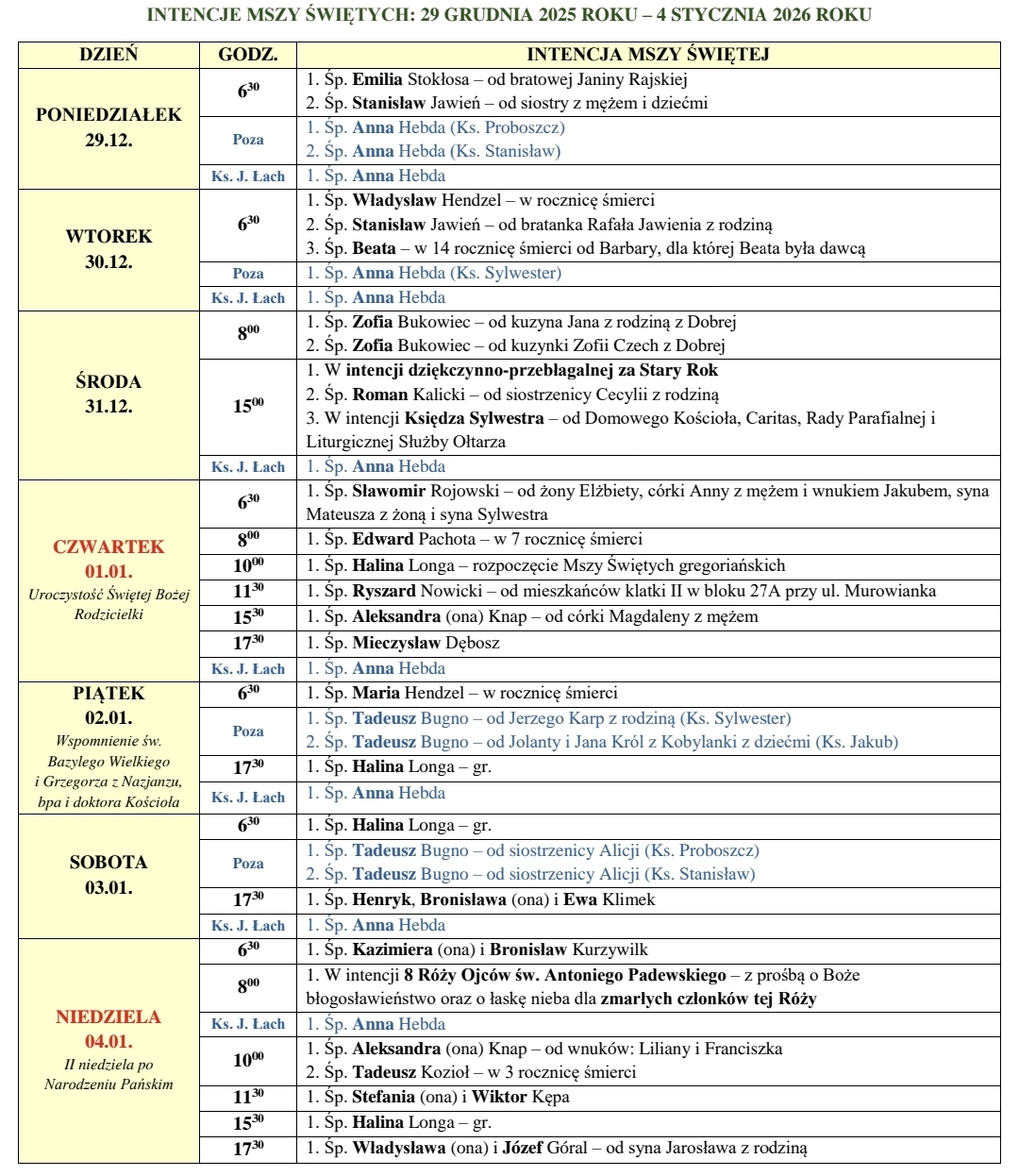 Intencje mszalne