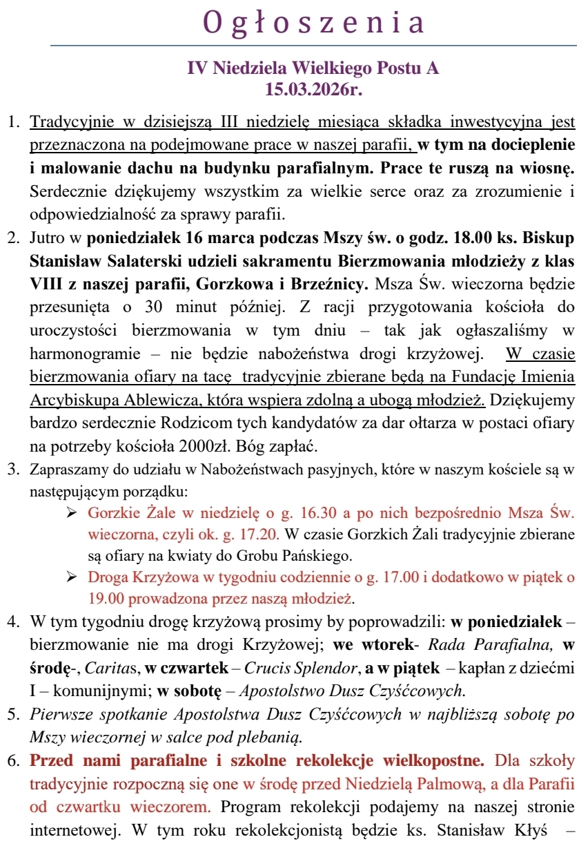 Gorzkie Żale - niedziela, godz. 1630