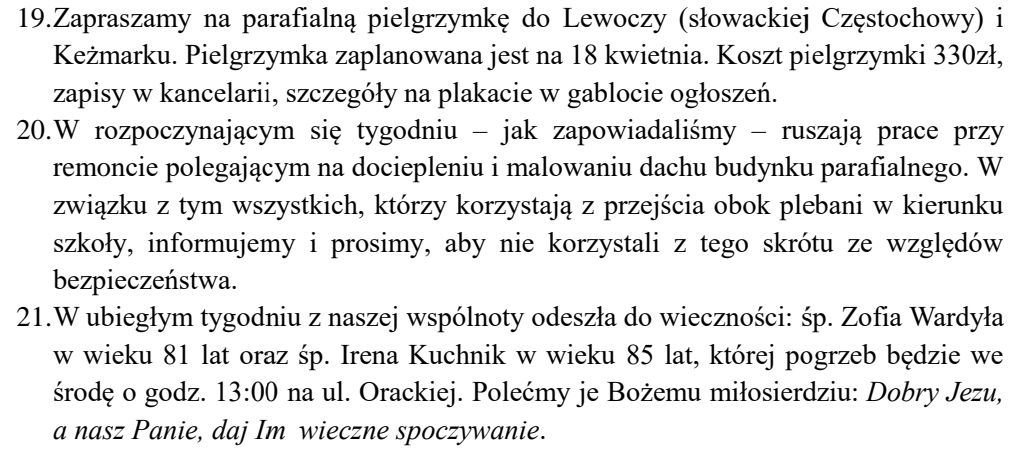 (ostatnia Msza św. bezpośrednio po zakończeniu nabożeństwa)