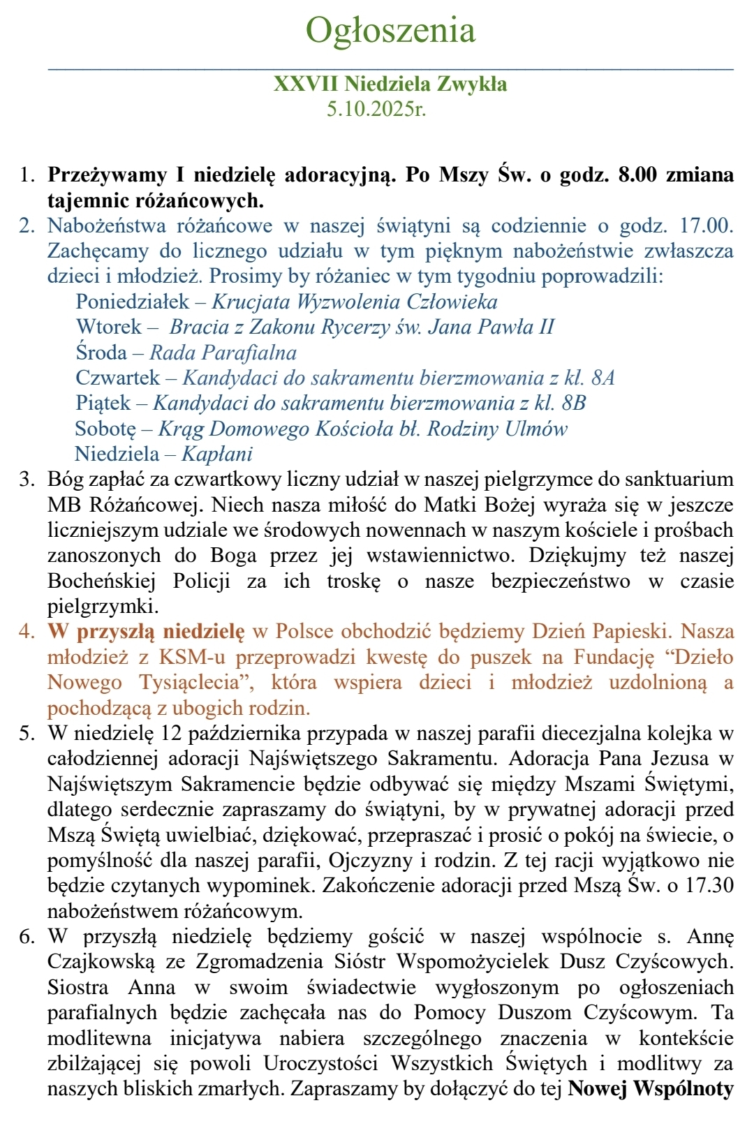 XXVII Niedziela Zwykła